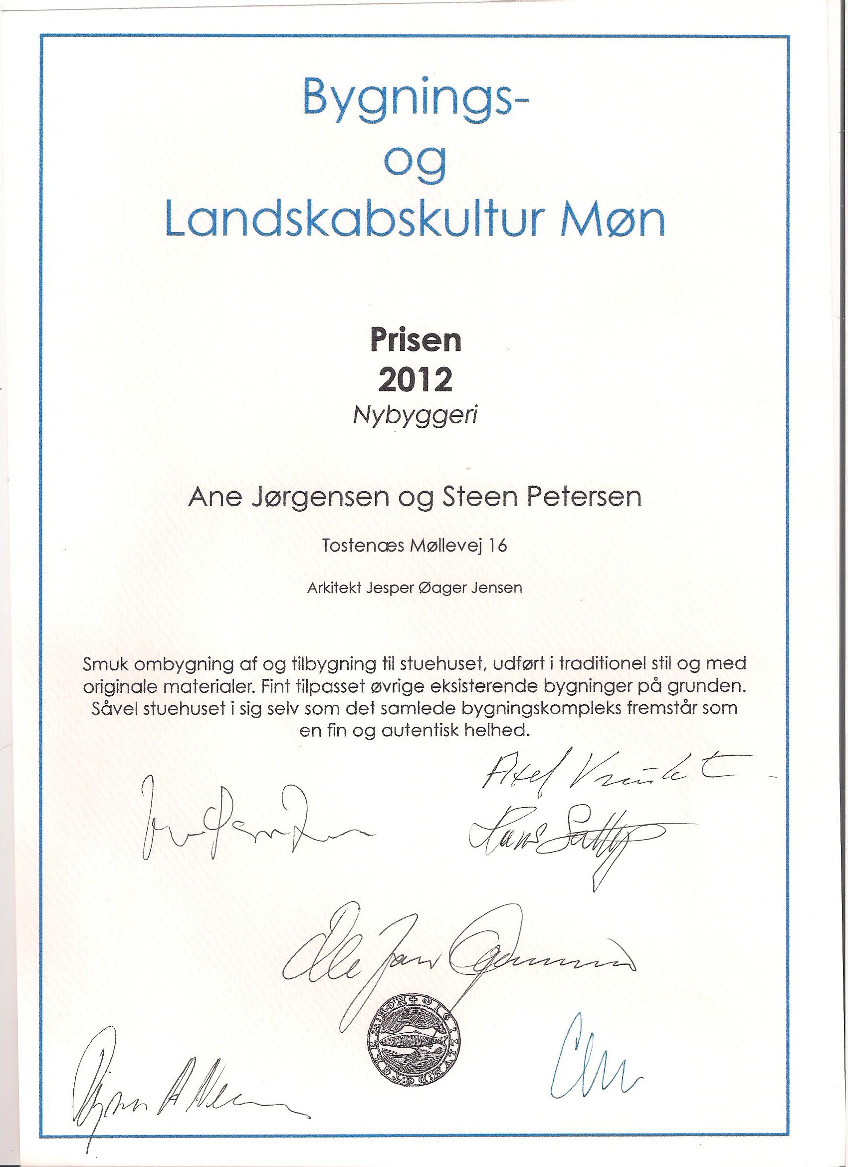 Jeg har stor erfaring med mere specielle løsninger, hvor der er kræset for detaljerne. Dette bl.a. med baggrund i, at jeg privat har bygget stor tilbygning i gammel stil med bindingsværk, mursten med munkestensforbandt, buede vinduesindfatninger og ø-lands naturstens klinkegulv med knasfuge. Jeg vil i al beskedenhed nævne, at jeg i den forbindelse har vundet Bygningskulturprisen 2012 for Møn og omegn.